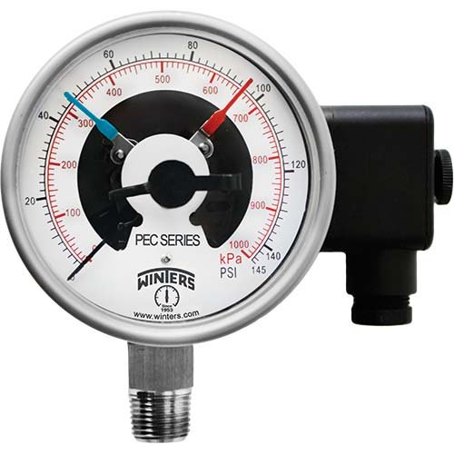 Manómetro premium PEC de acero inoxidable con contactos eléctricos Winters